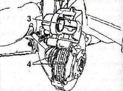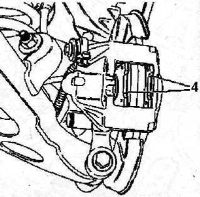 8. Снимите тормозные колодки 4 (см. иллюстрацию).