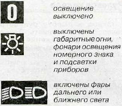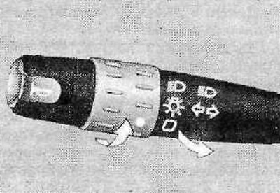 Для переключения света фар следует отвести подрулевой выключатель вперед или назад. При перемещении выключателя к рулевому колесу включается дальний свет. При включении дальнего света загорается сигнальная лампочка на щитке приборов.