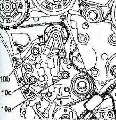 36. Затяните болты 10 с усилием 10 Нм в следующей последовательности: сначала 10а, затем 10b и 10с (см иллюстрацию).