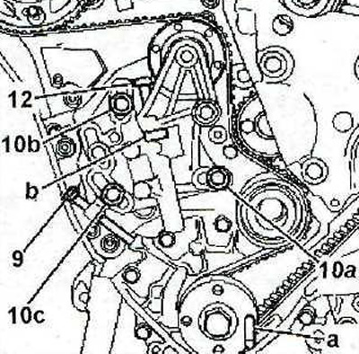 41. Ослабьте затяжку болтов 10а, 10b и 10с на 45°, вывинтите болт 12 (см иллюстрацию 2.40).