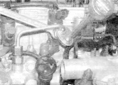 18. Снимите заглушки и состыкуйте быстродействующие муфты питающего и возвратного шлангов на топливном фильтре и соединения в верхней части топливного насоса. Зафиксируйте шланги соответствующими хомутами.