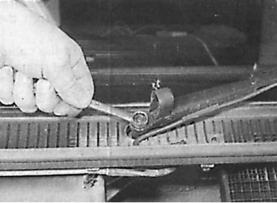 4. Повдигнете предпазната капачка в основата на рамото и развийте монтажната гайка на рамото на чистачката.