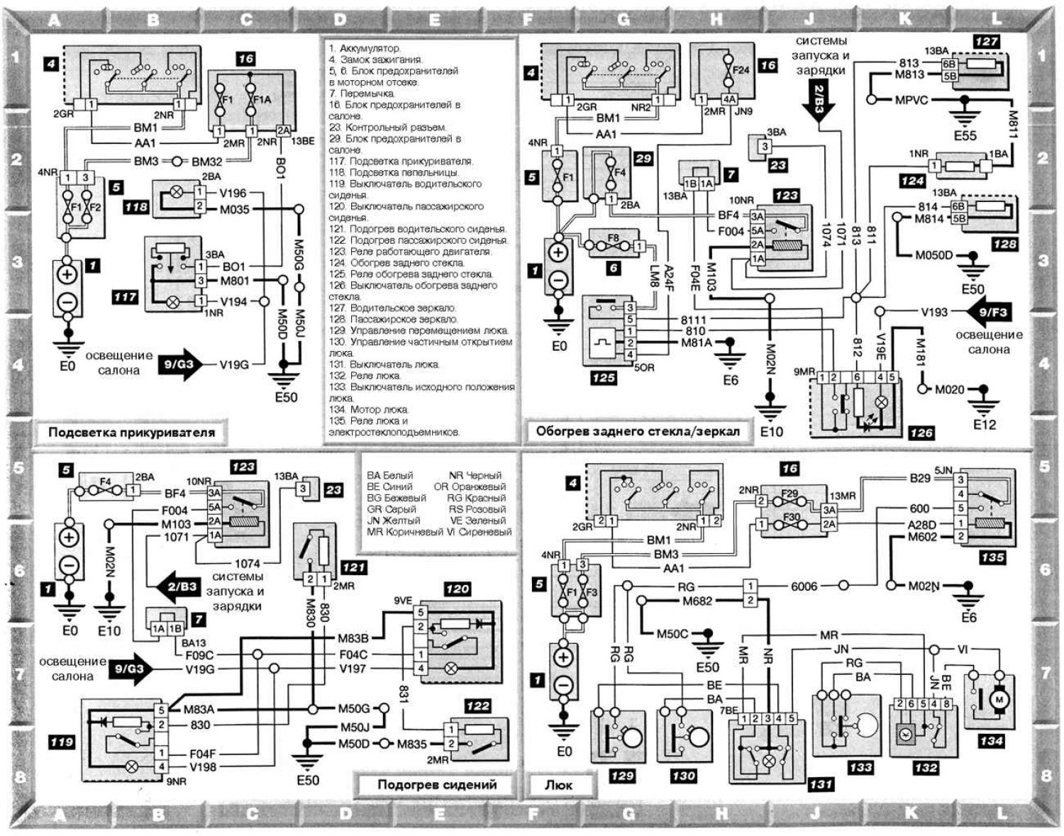 Френска статия за ремонт на автомобили Peugeot 406 (1995-2004): Осветление на запалка, отопляеми седалки, задно стъкло и огледала, люк: https://www.peugeotbook.ru/bg/40X/406/electrics/schemes/podsvetka-prikurivatelya-obogrev-sideniy-zadnego-stekla-i-zerkal-lyuk