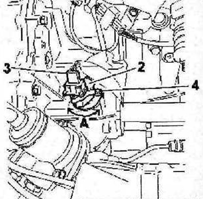 5.2 Разкачете щепсела 3, развийте болта 4, след това внимателно завъртете сензора на скоростомера 2 (виж стрелка А), да разхлаби хватката си