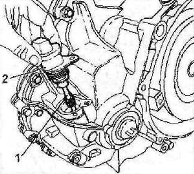 5.3 Отстранете сензора на скоростомера 2 заедно с вал 1
