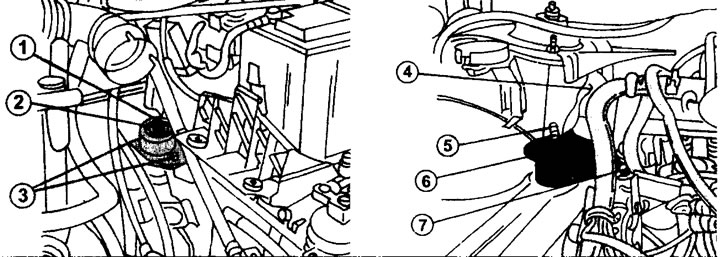 3 - монтажни болтове на стойката на двигателя, момент на затягане 25 Nm