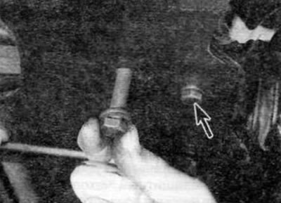 Фиг. 6.4. ...и два болта за закрепване на задната опорна втулка (вторият болт е маркиран със стрелка)...