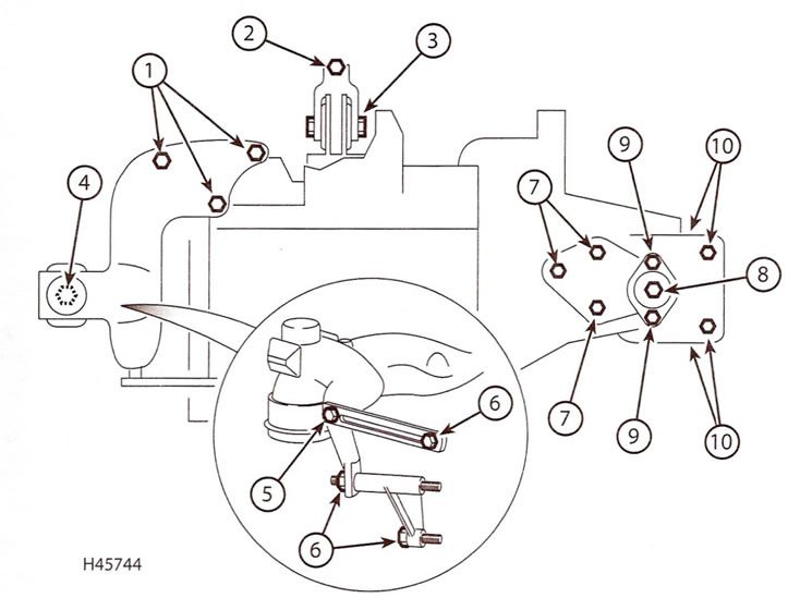 6. Гайка и болтове за закрепване на опорната скоба на главата на цилиндъра към двигателя